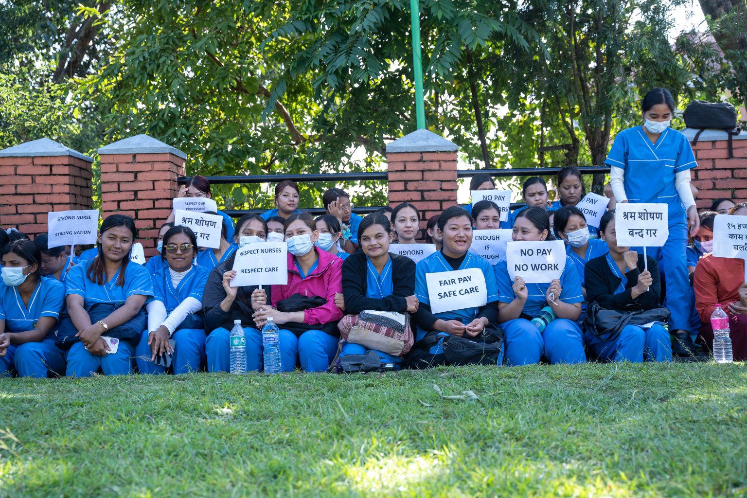 असोज १९ गते आइतबारदेखि आन्दोलित रहेका नर्सहरुले सोमबार वार्तापछि आफ्नो आन्दोलन स्थगित गरेका थिए । तर माग पूरा नभएपछि उनीहरु फेरि आन्दोलित भएका हुन् । उनीहरूले आफ्नो काम जारी राख्दै अस्पताल परिसरमा प्लेकार्डसहित धर्ना र नराबाजी गर्दै प्रदर्शन गरेका हुन् ।