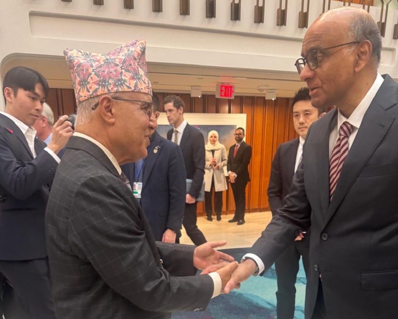 अर्थमन्त्री रामेश्वरप्रसाद खनालले सिङ्गापुरका राष्ट्रपति थरमन शानमुगार्थमसँग भेटवार्ता गरेका छन् ।