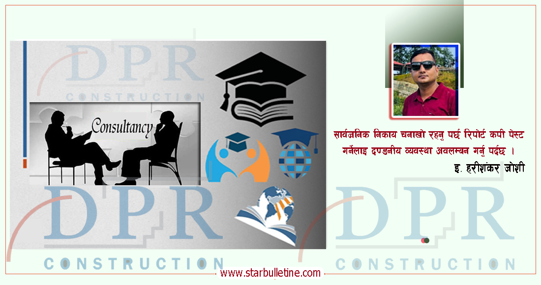 कन्सल्टेन्सी सेवा मा अन्तराष्ट्रिय व्यक्ति र अन्तराष्ट्रिय सस्था लाइ मात्र बिज्ञ ठान्ने प्रवृति हटाइ स्वदेसी बिज्ञ लाइ समेटेर बिसेस खाले परियोजना का प्रतिबेदनको लागि स्वदेशी लाइ प्रोत्सहान दिनु पर्दछ ।